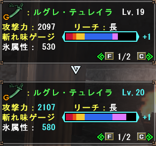 久しぶりにG級太刀を作成しましたが、いやぁ100%成功レシピが追加されたこともあって作成難度はだいぶ下がった気がしますねwしかしGz貧乏なのは変わらず・・・いつも金策に困らされます^^;